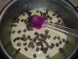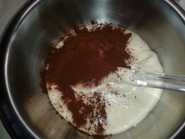 Cele 3 oua se separa, albusurile se bat cu zaharul vanilat si cei 150 gr. zahar. Galbenusurile se freaca cu o parte din ulei pana se incorporeaza bine uleiul. Se adauga galbenusurile peste albusurile batute spuma si se amesteca usor cu o paleta ca sa nu se lase spuma. Se adauga treptat laptele si uleiul ramas, amestecand in continuu. Praful de copt il amestecam cu faina cernuta , faina se adauga treptat amestecand continuu si se amesteca pana cand se incorporeaza bine . Optional la sfarsit se pot adauga bucati de ciocolata.