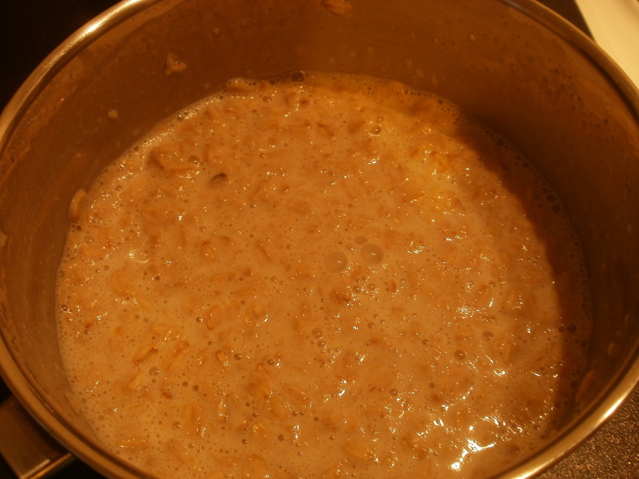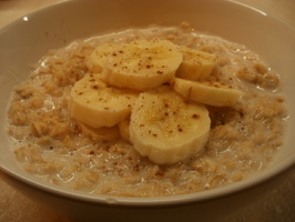 Laptele se pune intr-o Cratita pe foc si se adauga mierea , scortisoara si se amesteca cu un tel. Cand sa incalzit laptele se adauga cerealele si se amesteca continuu pana se ingroasa compozitia. Dupa ce sa ingrosat se pune compozitia intr-un Bol si deasupra se taie cateva felii de banana deasupra se presoara putina scortisoara.