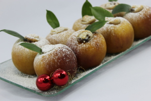 Urmatoarea etapa este umplutura din martipan, intr-un bol punem martipanul, scortisoara pudra, zaharul pudra iar la urma stafidele hidratate pe care le-am pregatit ulterior si putin rom . Se amesteca bine compozitia si se pune intr-un Pos. Merele scobite se pun intr-o tava, iar in mijloc se umplu cu compozitia de martipan. Merele se coc la 160 grade aproximativ 20 minute in functie de categoria de mere care o folositi( sunt mere care se coc mai repede , iar altele care necesita timp mai mult de coacere).