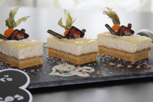 Laptele si miezul de la pastaia de vanilie se incalzeste (laptele nu trebuie sa fiarba). Gelatina se inmoaie in apa rece. Intr-o cratita se pune apa calda pentru bain-marie iar deasupra se pune un bol de metal , in bol se pun galbenusurile impreuna cu zaharul si cu un tel se amesteca bine pana devine o compozitie cremoasa. Peste crema rezultata se adauga treptat laptele incalzit, apoi se adauga gelatina hidratata. Compozitia se lasa sa se raceasca. Intre timp se mixeaza frisca lichida dupa care se adauga treptat in compozitia de mai sus racita. La sfarsit se adauga fulgii de cocos.