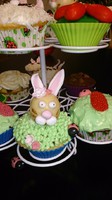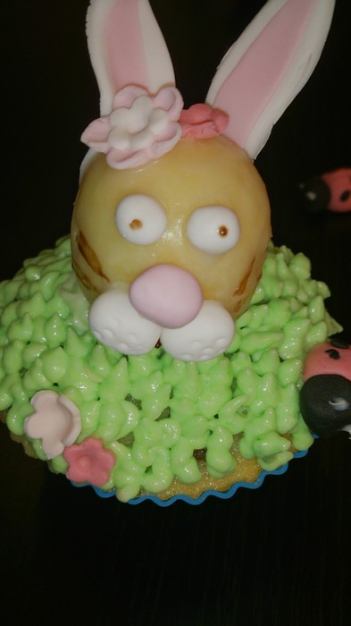 Iepurasii, puisorii sunt facuti din fondant si aluat iar mamarutele si floricelele doar din fondant.