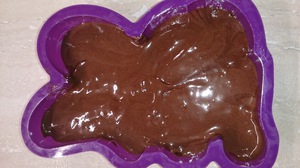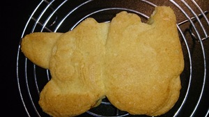 Forma de iepuras se unge cu unt pe interior si se pune aluatul.