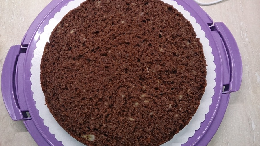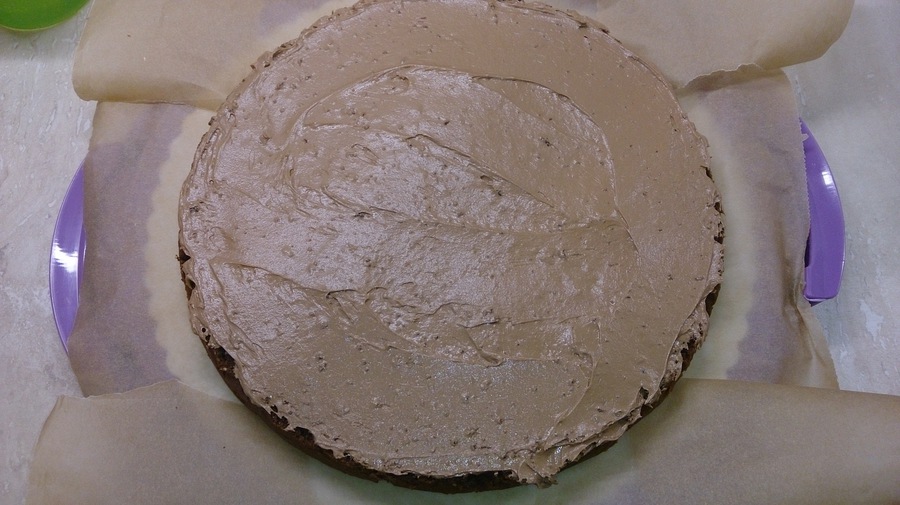 Blatul de Tort se taie in doua si se pune o parte din crema iar peste crema se pune a doua parte a blatului. Crema ramasa se intinde uniform peste tot tortul cu un cutit sau o paleta .