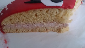 O capsuna uriasa si delicioasa ;) ! Aceasta este reteta mea si propun sa o incercati si voi. Mie imi plac foarte mult capsunii dar din pacate nu pot sa mananc deoarece sunt alergica la semintele care le au capsunii. M-am gandit cum sa fac sa mananc si eu o capsuna mare si sa imi satisfac pofta si asa mi-a venit ideea de a face o capsuna mare. Apropo, sosul de capsuni este strecurat prin sita ca sa nu aiba seminte si sa pot sa manac si eu ;) dar voi nu trebuie sa-l treceti prin sita. Este o combinatie foarte reusita si ma bucur ca a fost atat de apreciat tortul meu. Atat musafirii dar mai ales eu am fost foarte incantati de acest tort si s-a mancat foarte repede. Sper sa fiti si voi la fel de incantati de aceasta reteta .