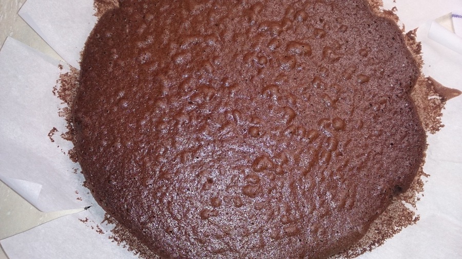 Ouale se pun intr-un bol si se mixeaza bine cu 3 linguri de apa, apoi se adauga zaharul si se mixeaza 3-4 minute. Cacaoa se amesteca cu faina si praful de copt si se pune peste compozitia de oua. Se tapeteaza o forma de tort cu diagonala de 26 cm cu hartie de copt si se pune compozitia in forma. Se baga la cuptor la 170 grade aproximativ 25 min. Dupa ce sa copt, se lasa la racit.