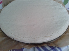 Albusurile se mixeaza foarte bine impreuna cu zaharul pana devine o spuma tare, apoi se adauga fulgii de cocos, amidonul si se amesteca cu o paleta. Se tapeteaza o forma de tort cu hartie de copt, iar hartia se unge cu ulei . Se pune spuma de albusuri in forma si se baga la cuptor la 150 grade timp de 30 minute. Dupa ce s-a copt se lasa sa se raceasca.